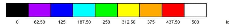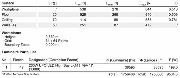 - The average workplane illuminance jumps from 215 lx to 538 lx (File 01 vs. File 02), eliminating dark zones entirely.
