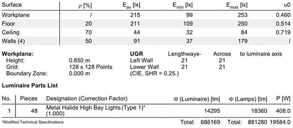 - Energy consumption simulations are precise down to each lamp: 48 LED units save $5312 annually in electricity costs (File 01), while the high mercury disposal costs of metal halide lamps ($200 per unit) are completely eliminated.